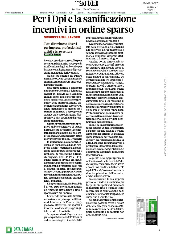 Enzo De Fusco On Twitter Codiv 19 E Sicurezza Sul Lavoro Previsti Incentivi Alle Aziende Per Sanificazione E Strumenti Di Protezione Individuale In Un Quadro Normativo Frammentato Sole24ore Https T Co G0rv88ie6p