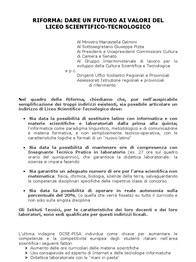 Riforma Dare Un Futuro Ai Valori Del Liceo Scientifico Tecnologico
