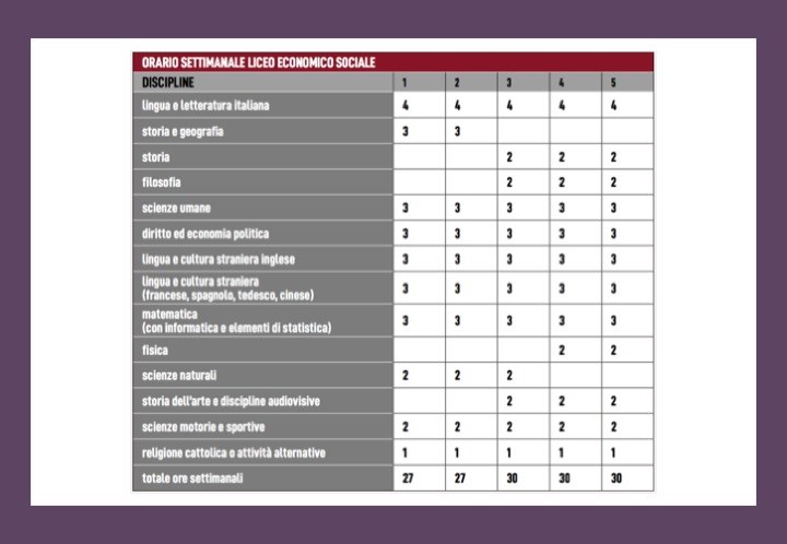 Il Quadro Orario Del Liceo Economico Sociale Les