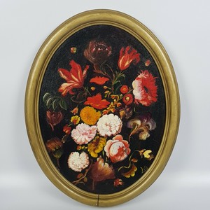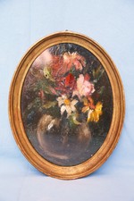Antico Dipinto Ovale Natura Morta Con Vaso Fiori Anticswiss
