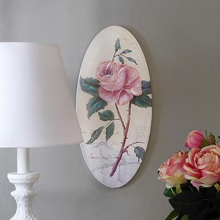 Disraeli Quadro Legno Ovale Con Rose Stile Shabby Chic Vintage Arredamento 40x30x1 7cm Amazon It Casa E Cucina
