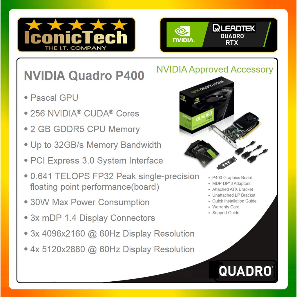 Buy Now Leadtek Quadro P400 256 Cuda Core 2gb Gddr5 Low Profile 3x Mini Displayport Ple Computers