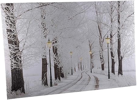 Ideapiu 2 Quadro Tela Paesaggio Innevato Con 5 Luci Led Nei Lampioni Amazon It Casa E Cucina