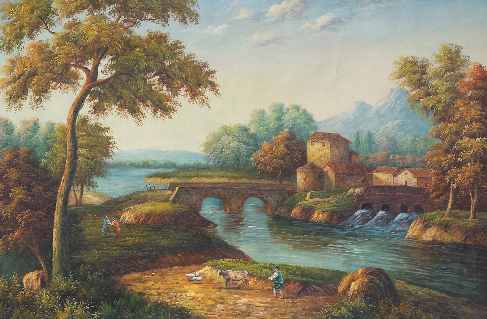 Dipinto Olio Su Tela 60x90 Cm Paesaggio Di Campagna Quadro Fiume Villaggio Ebay