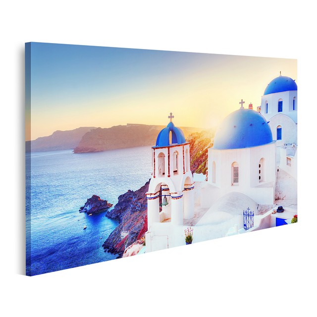 Canvashop Quadri Moderni Cm 100x70 Santorini Grecia Mare Tramonto Stampa Su Tela Canvas Quadro Moderno Xxl Amazon It Casa E Cucina