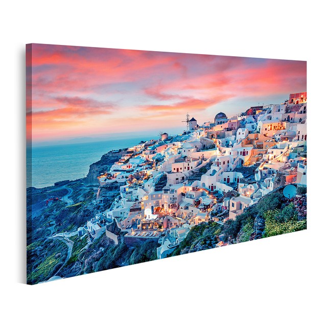 Islandburner Quadro Moderno Citta Di Oia Santorini Grecia Al Tramonto Stampa Su Stampa Su Tela Quadro Jkg It Amazon It Casa E Cucina