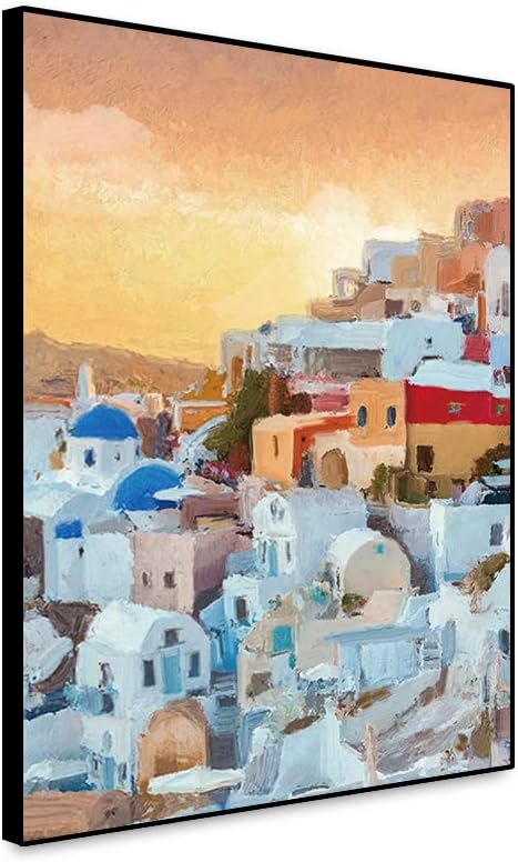 Hetingyue Quadro Astratto Immagine Arte Della Parete Grecia Nordica Santorini Egeo Paesaggio Marino Tela Poster Soggiorno Decorazione Camerette Pittura Frameless 20x30cm Casa E Cucina Decorazioni Per Interni