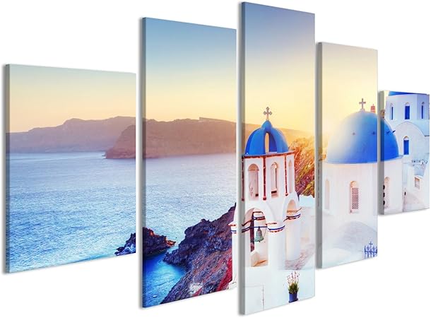 Paul Sinus Art Santorini Citta Paesaggio 180 X 50 Cm 2 Immagini Da Parete 50 X 90 Cm Stampa Artistica Quadro Su Tela Gia Montato Su Telaio Amazon It Casa E Cucina