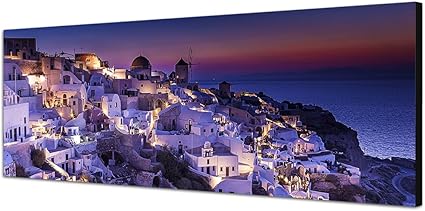 Quadro Su Tela Come Panorama 120 X 40 Cm Grecia Santorini Luna Mare Notte Amazon It Casa E Cucina