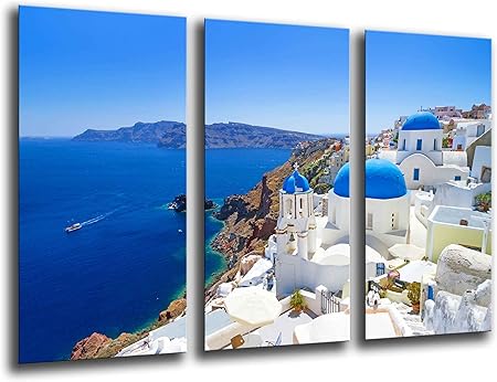 Quadro Moderno 3 Pz Grecia Santorini Cm 50x150 Paesaggio Stampa Su Tela Canvas Eur 39 90 Picclick It