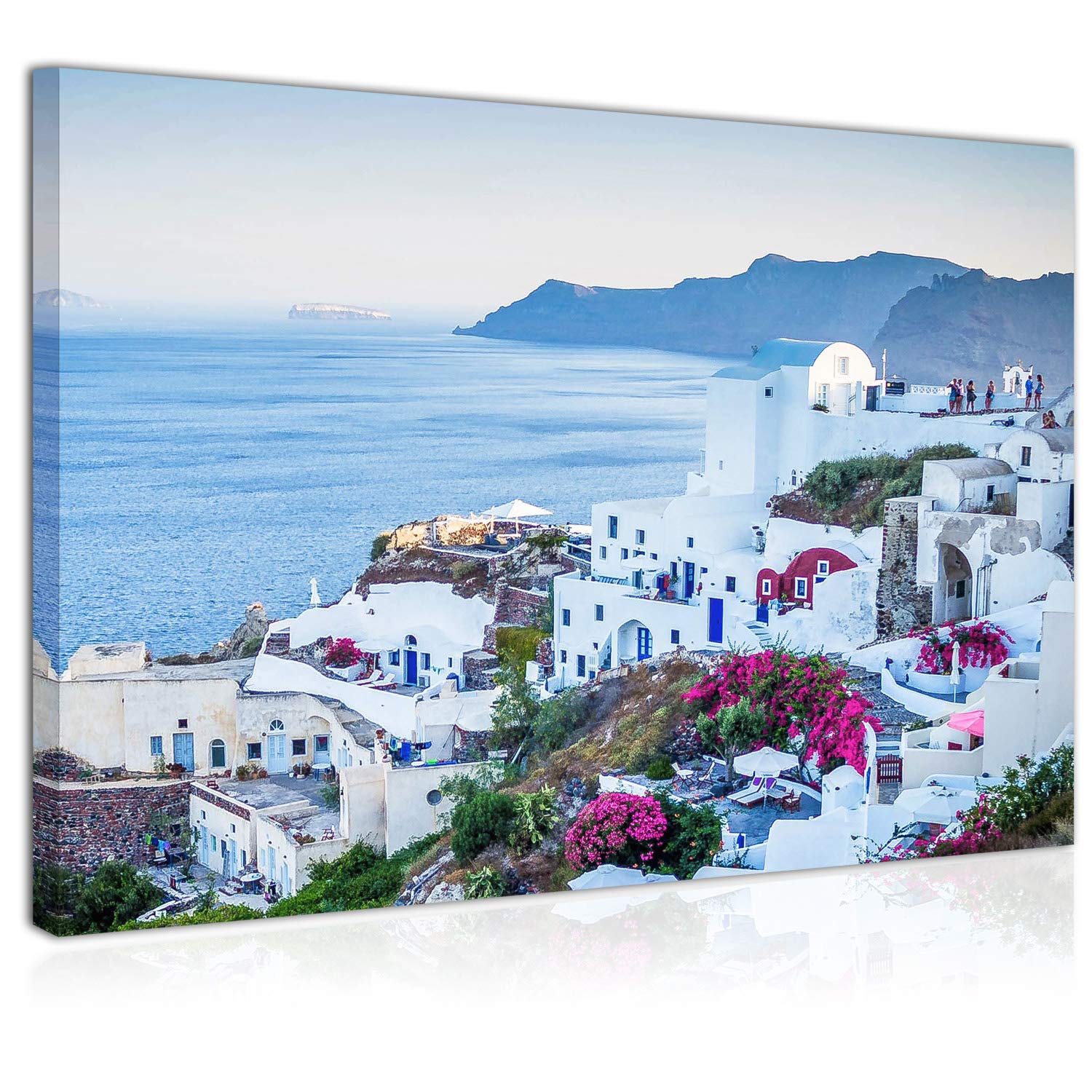 Quadro Stampa Su Tela Come Panorama In 150 X 50 Cm Fiori Santorini Paesaggio Montagne Vista Mare Amazon It Casa E Cucina