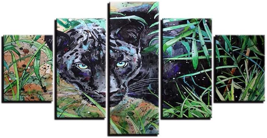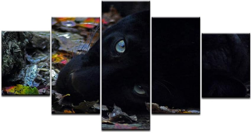 Zrtlat 100 55cm 5 Pezzi Di Stampa Ad Alta Definizione Su Tela Dipinto Animale Pantera Nera Gruppo Artistico Decorazione Della Casa Poster Da Parete Quadro Modulare Amazon It Casa E Cucina