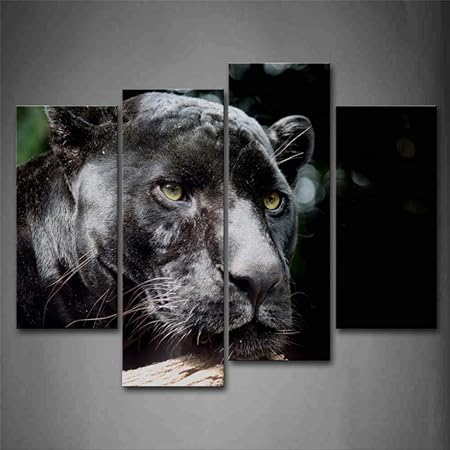 Mxlck 4 Tele Pantera Nera Testa Legno Ritratto Parete Arte Pittura Quadro Su Tela Stampa Animale Decorazione Casa Regalo Amazon It Casa E Cucina