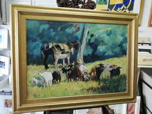 Quadro Olio Su Tela Buora Paesaggio Campagna Con Pastore E Animali Mercatino Dell Usato Torino Tenivelli