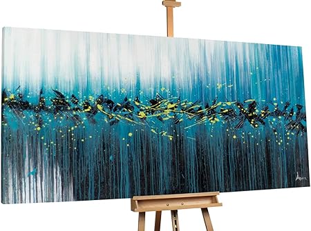 Kunstloft Stravagante Dipinto Ad Olio First And Last In 200x100cm Tele Originali Manufatte Xxl Design Action Painting Petrolio Giallo Quadro Da Parete In Olio Arte Moderna Amazon It Casa E Cucina
