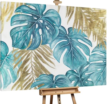 Gilde 38897 Grande Foglie Quadro 3d Su Tela Color Crema E Petrolio Altezza 100 Cm Larghezza 100 Cm Amazon It Casa E Cucina