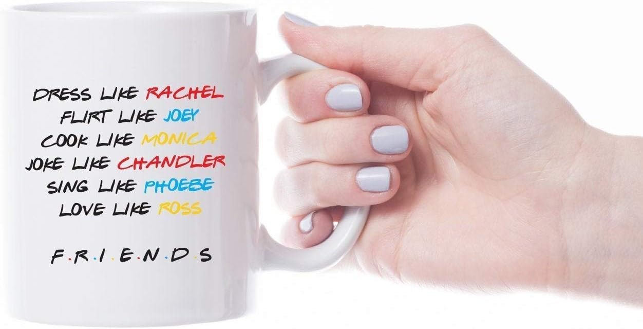 Amazon Com Friends Tv Show Mug Dress Like Rachel Flirt Like Joey Friends Tv Fan Gift Friends Mug Friends Tv Show Gift Rachel Monica Ross Gift Mug Kitchen Dining