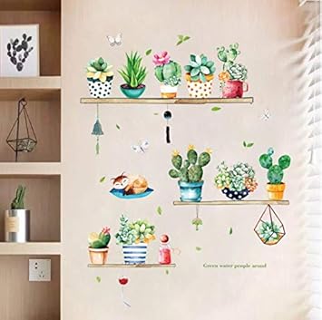 Piante Grasse Cactus Pianta In Vaso Adesivo Da Parete Per Soggiorno Camera Da Letto Fai Da Te Bonsai Parete Murale Pvc Stickers Murali Diy Decorazione 71 99 Cm Amazon It Fai Da Te