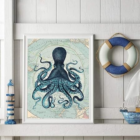 Quadro Decorativo Su Tela Tentacoli Di Polpo Kraken Stampe Poster Vintage Costa Marittima Immagine Di Arte Delparete Antartide Mappa Tepittura Decorazione Delparete Di Casa 60x80cm Amazon It Casa E Cucina