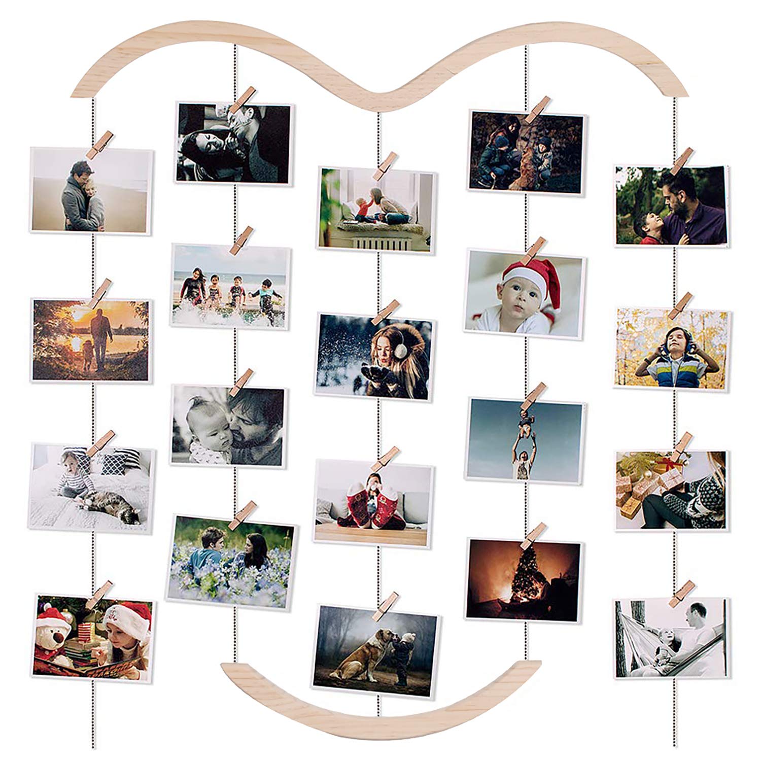 Cornice Portafoto Portachiavi In Legno Naturale 44 X 55cm Con Cordino E Mollette Bakaji