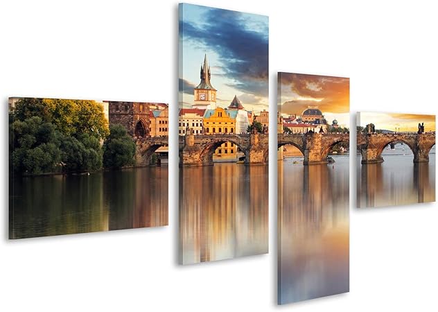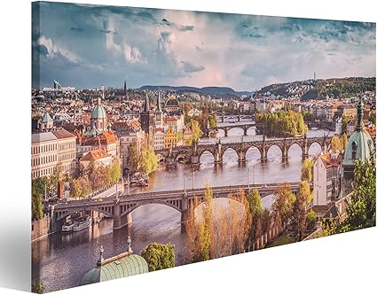 Quadro Moderno Praga Repubblica Ceca Ponti Skyline Con Storico Ponte Carlo E Fiume Moldava Stampa Su Tela Quadro X Poltrone Salotto Cucina Mobili Ufficio Casa Fotografica Formato Xxl Amazon It Casa