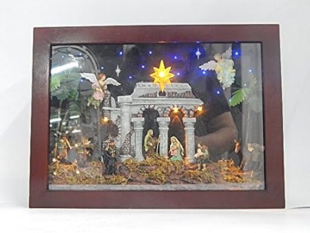 Ideapiu Quadro In Legno Con Presepe Luci Led E Stella Glitterata Amazon It Casa E Cucina