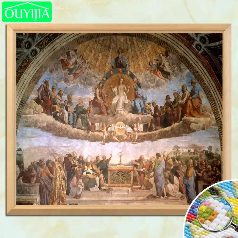 Raphael Famosa Pintura Disputacao Do Sagrado Sacramento 5d Diy Pintura Diamante Quadrado Completo Bordado Decoracao Imagem Ponto Cruz Com Pintura De Diamante Aliexpress