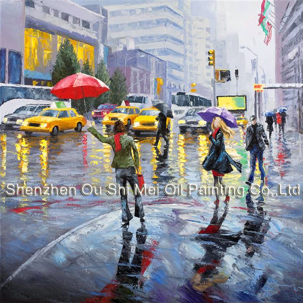 Ragazza Con Ombrello Rosso Rain Street New York Paesaggi Dipinti Coltello Dipinto A Mano Pittura Di Paesaggio Su Tela Per La Decorazione Della Parete Hand Painted Paintings On Canvasscenery Painting Aliexpress