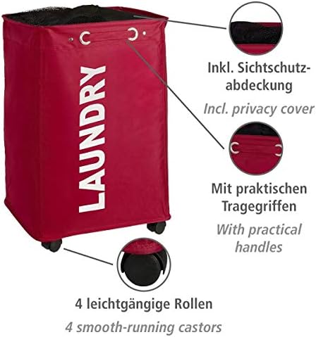 Amazon Com Wenko Quadro Basket With Wheels Sorter With Lid Storage Hamper Laundry Bin Slim Red 15 7 X 23 6 X 13 0 Inch Home Kitchen