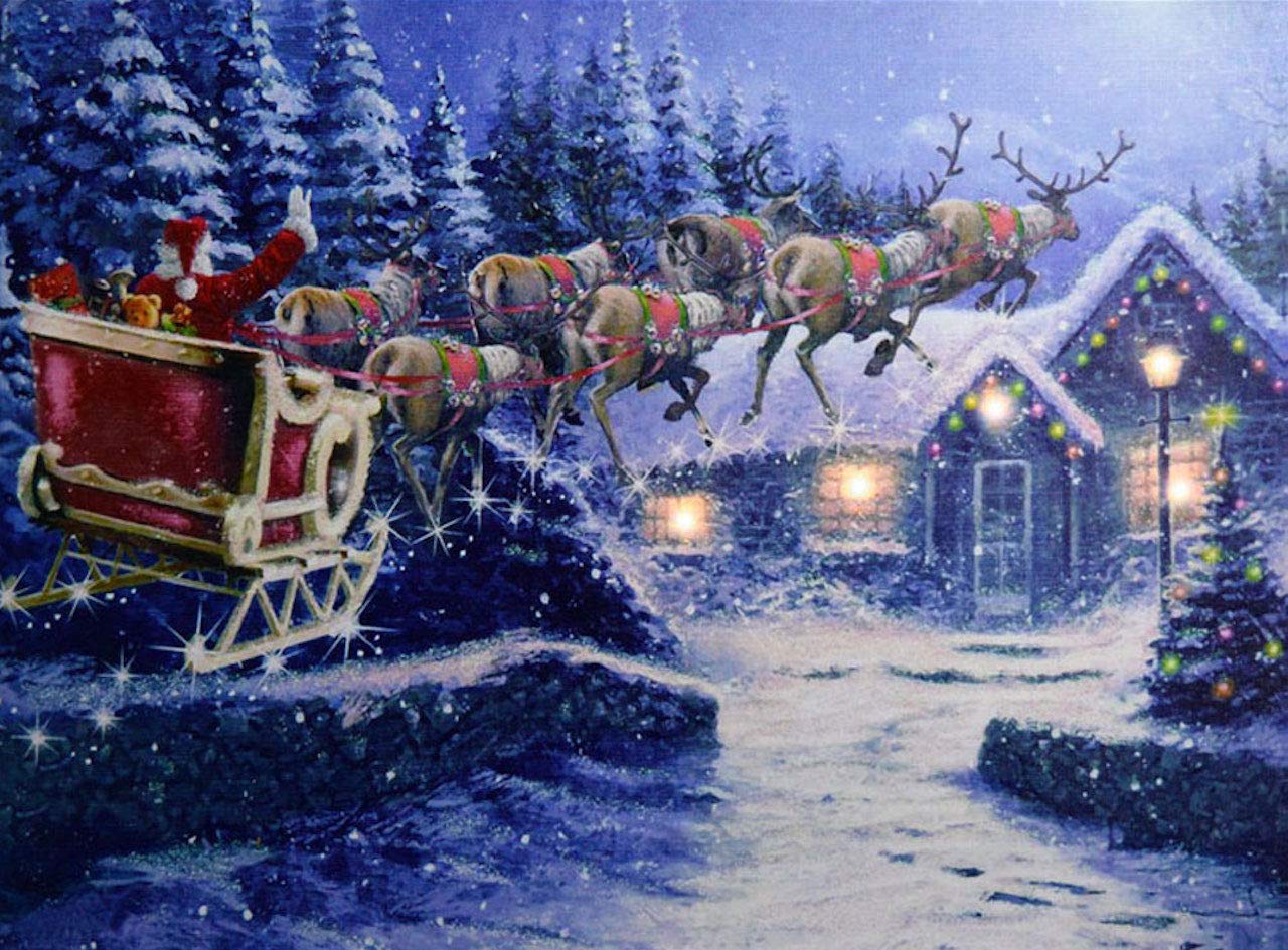 Quadro Led 60x40 In Tela Con Babbo Natale Su Slitta Il Villaggio Di Babbo Natale