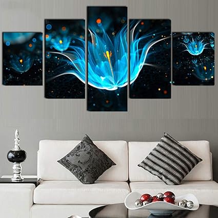 Size 3 Quadro Su Tela Dipinto Di Orchidea Blu Viola 5 Pezzi Hd Stampa Immagine Modulare Moderna Camera Da Letto Decorazione Decorazione Della Casa Senza Cornice Amazon It Fai Da Te