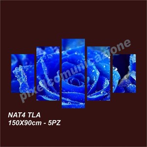 Dettagli Su Quadro Moderno Tela 5 Pz 150x90 Arredo Casa Rosa Blu Fiori Flowers Rugiada