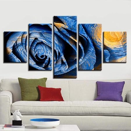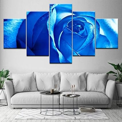 Bnkrtopsu 5 Quadro Su Tela Stampa Quadri Su Tela Decorazione Artistica Per Manifesti E Pareti Di Stanze Fiore Di Rosa Blu 150x80 Cm Senza Cornice Amazon It Casa E Cucina