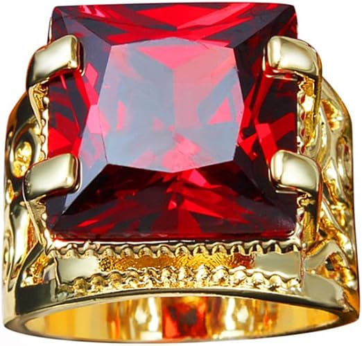 Anello Da Uomo In Acciaio Inossidabile Color Oro Con Zircone Color Rosso Rubino Taglio Quadrato Fascia Decorata Con Incisioni Ad Artiglio Di Drago Anello A Fascia Color Oro Stile Vintage Oro Giallo