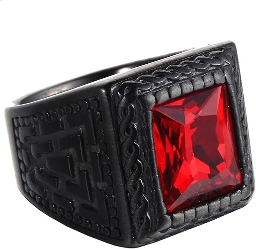 Hijones Uomo Acciaio Inossidabile Anello Rubino Di Cristallo Con Zirconi Rossi A Taglio Quadrato Nero Amazon It Gioielli