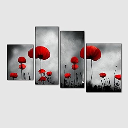 Quadri Moderni Dipinti A Mano Olio Su Tela Grigio Rosso Nero Fiori Papaveri Ebay Olio Su Tela Idee D Arte Dipinti