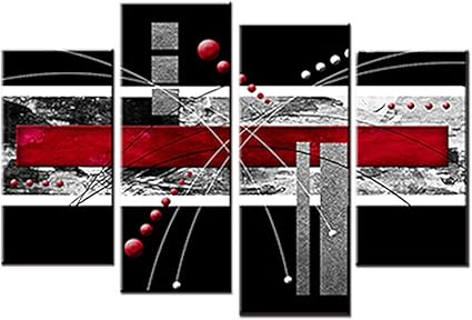 4 Pezzo Dipinto A Mano Quadri Moderni Pittura A Olio Astratta In Bianco E Nero Rosso Grande Tela Arte A Buon Mercato Living Room Decor Senza Cornice Oil Oil Canvas Paintingoil Painting Xiamen