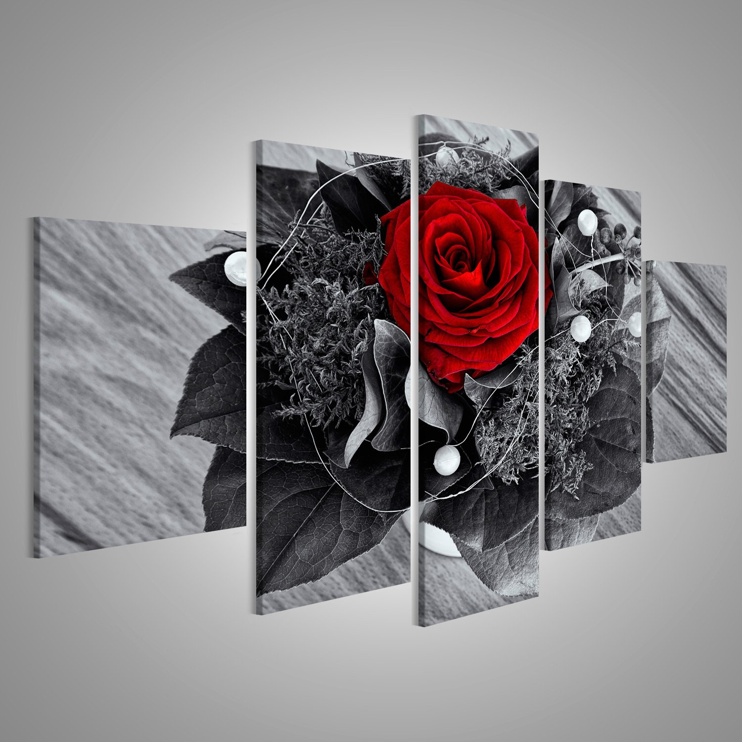 Quadro Moderno Rosa Rossa Su Sfondo Grigio Effetto Colore Ebay