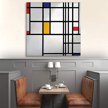 Quadro Piet Mondrian Composizione In Rosso Giallo Blu E Nero Stampa Su Tela Canvas Pronto Da Appendere Vari Formati 70x70 Cm Amazon It Casa E Cucina