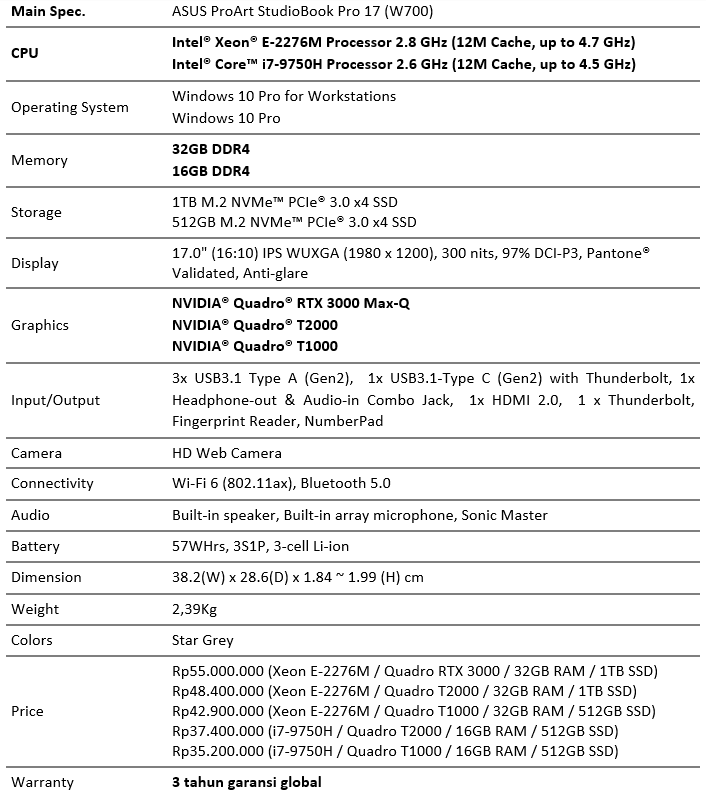 Asus Resmi Luncurkan Proart Laptop Khusus Profesional Dengan Harga Termahal Rp 176 Juta Priceprice Com