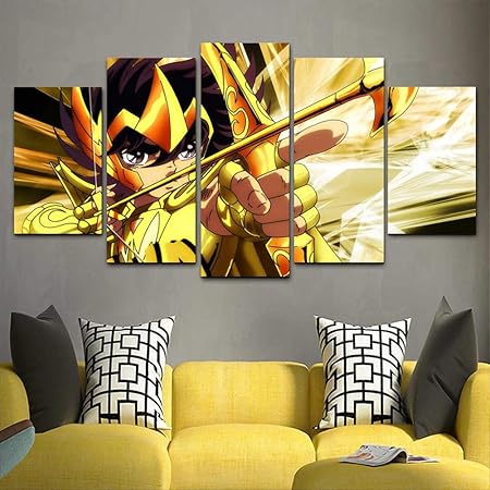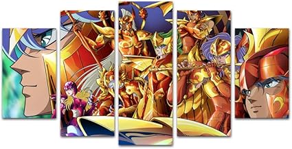 Quadro Su Tela Stanza Dei Bambini Di Saint Seiya 5 Pezzi Immagini Moderni Murale Grafica Decorazione 200cmx110cm 78 74 X43 31 Wxh Con Cornice Amazon It Casa E Cucina