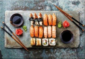Pintdecor Quadro Sushi Mix Celeste Pesce Bacchette Salsa Stampa Su Tela G2650 Ebay