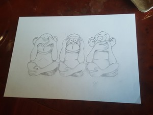 Quadro Disegno A Matita Tre Scimmiette Realizzato A Mano Eur 4 00 Picclick It