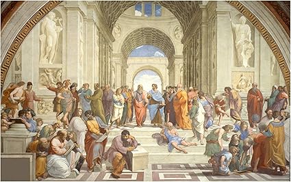 Descrizione tratta dalla collana caffè filosofico del dipinto di raffaello la scuola di atene. Disponibile solo stampa su tela canvas o stampa con telaio in legno di qualità superiore. Questa eccezionale decorazione murale metterà in evidenza il prestigio di un ufficio uno studio del medico o di uno spazio commerciale. Il quadro scuola di atene dalla stanza della segnatura è una decorazione murale adatta non solo agli appartamenti privati ma anche si presenterà benissimo anche all interno degli uffici pubblici.