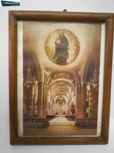 H 559 Quadro In Legno Scuro Raffigurante L Interno Di Una Chiesa Cattolica Ebay