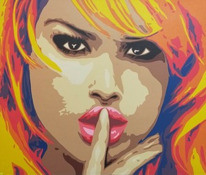Quadro Dipinto A Mano Ritratto Donna Silenzio Pop Art L120 Cm X H90 Cm Eur 89 00 Picclick It