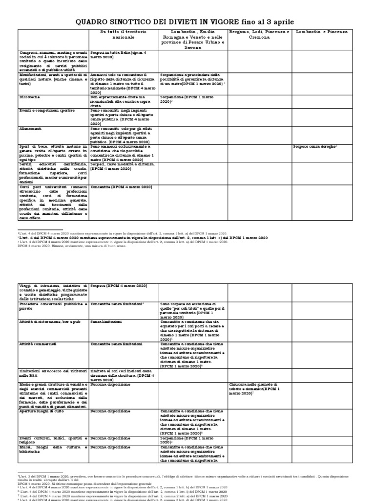 Quadro Sinottico Dei Divieti In Vigore Fino Al 3 Aprile 2020 Novetv Com