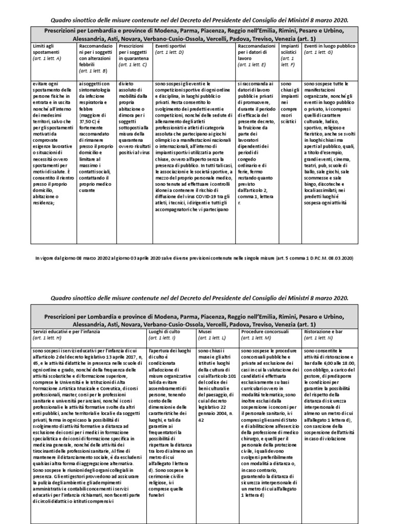 Quadro Sinottico Dpcm 8 Marzo 2020 Www Primopologalatina Gov It