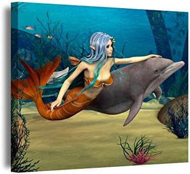 Sirena E Dolphin Dipinti Da Parete Quadri Fiaba Pinna Fata Myloview It