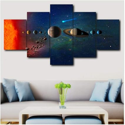 Areabp Quadro Decorativo Decorativo A Parete Modulare Con 5 Pannelli Di Sistema Solare Dipinto Su Tela Per Soggiorno Camera Da Letto Stampa Poster Frame Amazon It Casa E Cucina